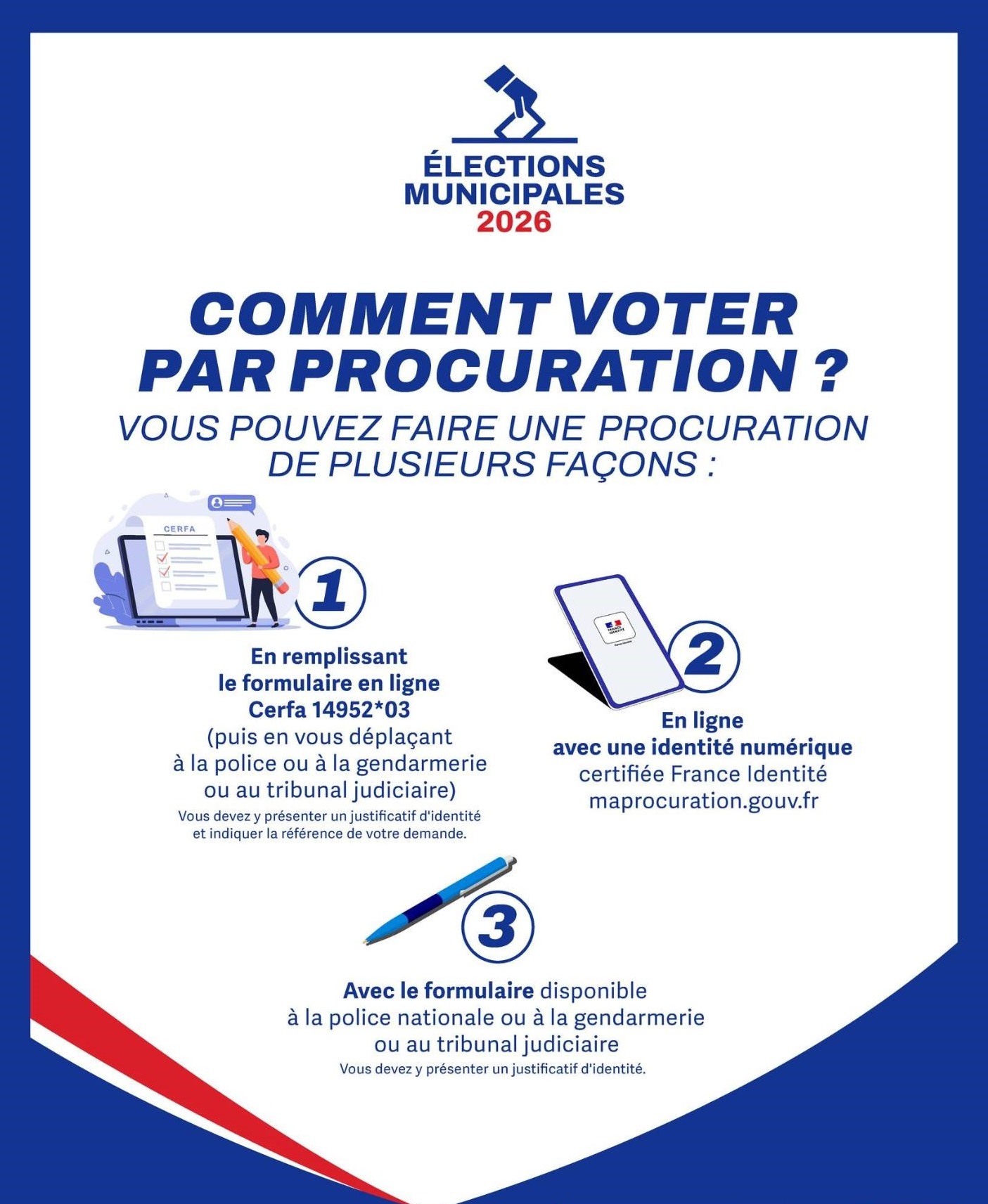 À l’approche des prochaines élections municipales, la municipalité informe les citoyens des différentes procédures permettant de voter par procuration. Ce dispositif permet à un électeur