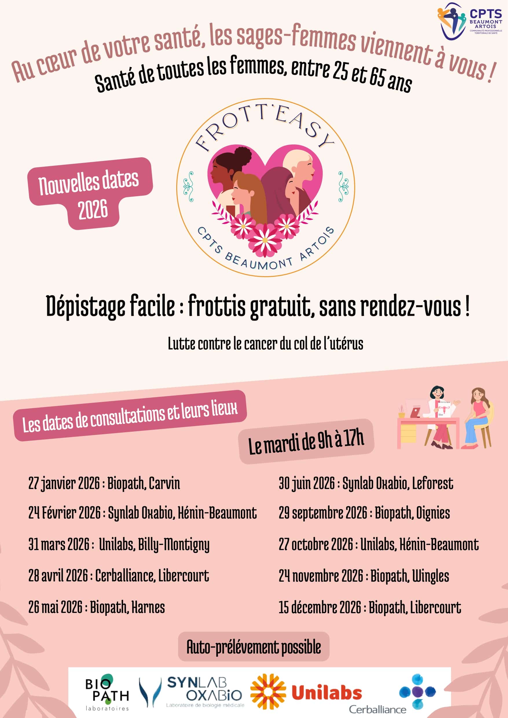 La municipalité s’associe au CPTS Beaumont Artois pour promouvoir l’action « Frott’easy », une campagne de dépistage du cancer du col de l’utérus menée en