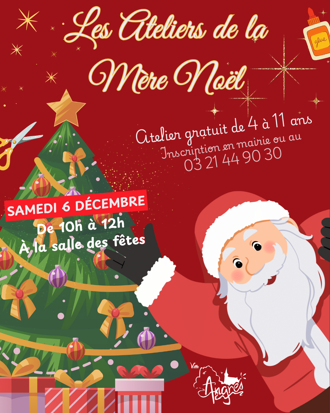 La Ville d’Angres invite les jeunes habitants à participer aux Ateliers de la Mère Noël, un moment ludique et créatif pour préparer les fêtes de fin d’année.
